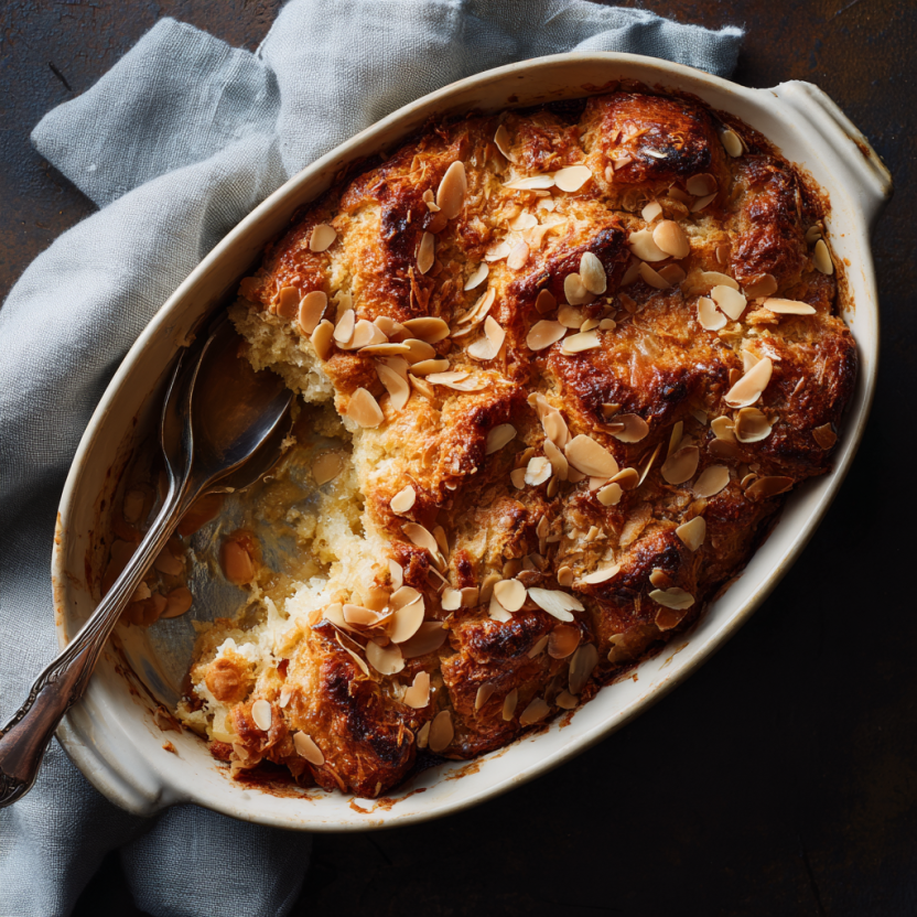 Each ingredient plays an important role. The croissants create the base, the custard brings creaminess, and the almonds add that signature nutty richness that makes this dish stand out.