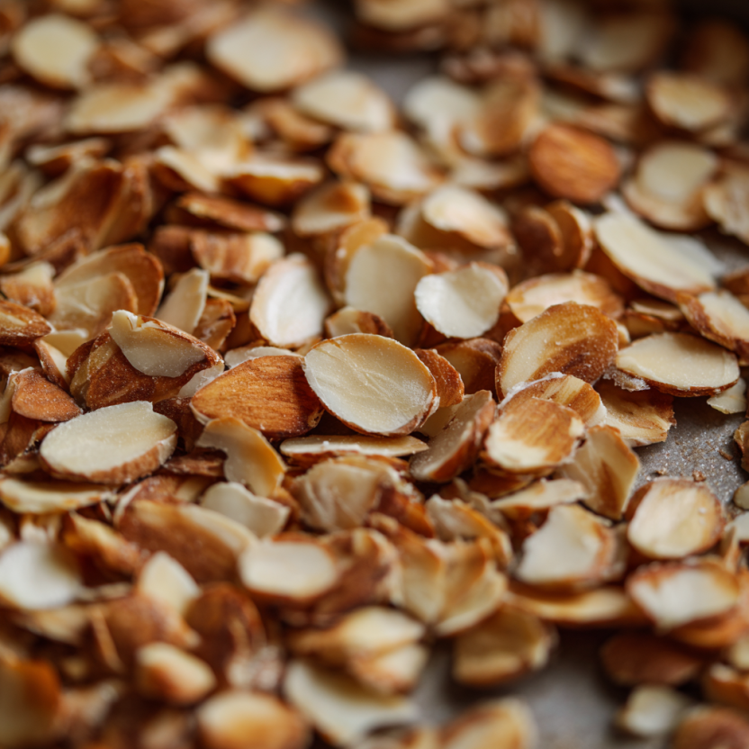 Scatter sliced almonds generously over the surface. They toast beautifully in the oven and add texture to every bite.