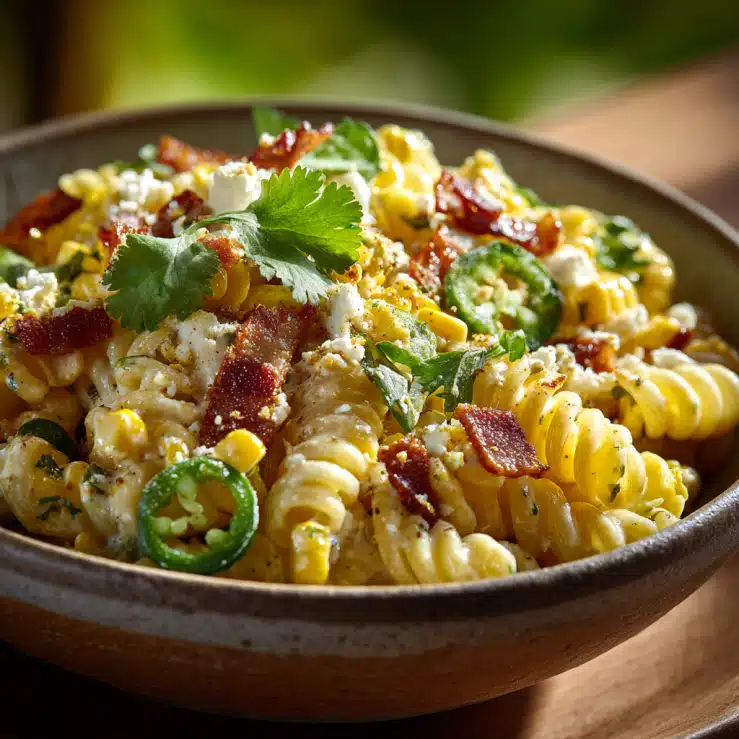 Every time I make this Bacon Street Corn Pasta Salad, I’m reminded why I love cooking so much. It’s more than just a meal it’s a moment of connection, a dish that brings people together and sparks joy. From the first crispy bite of bacon to the sweetness of corn and the creaminess of the dressing, it’s a hug in a bowl. I hope this recipe fills your kitchen with the same warmth and happiness it always brings to mine. Share it with friends, family, or even just treat yourself every bite tells a story of love, laughter, and good food.