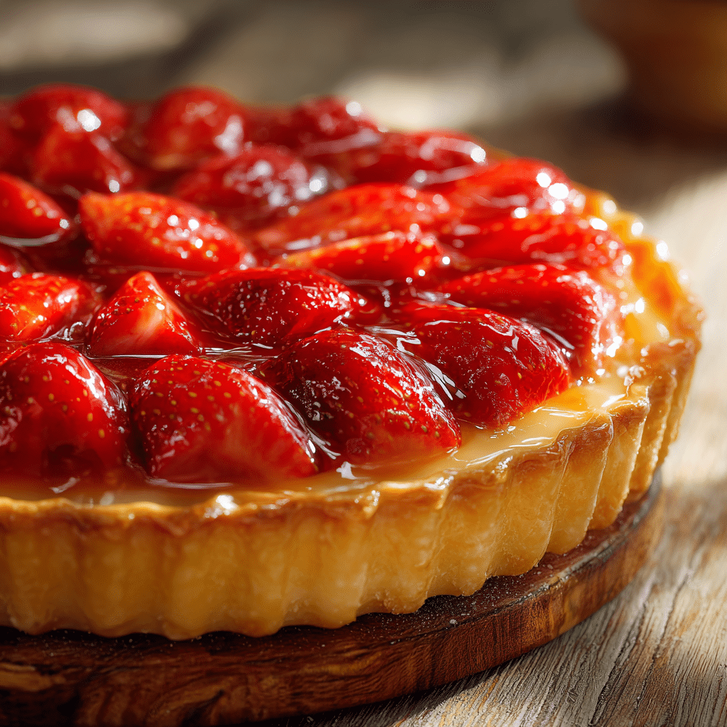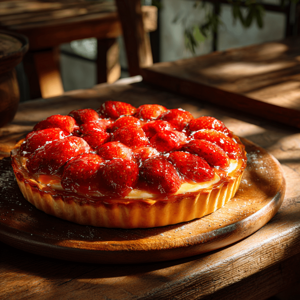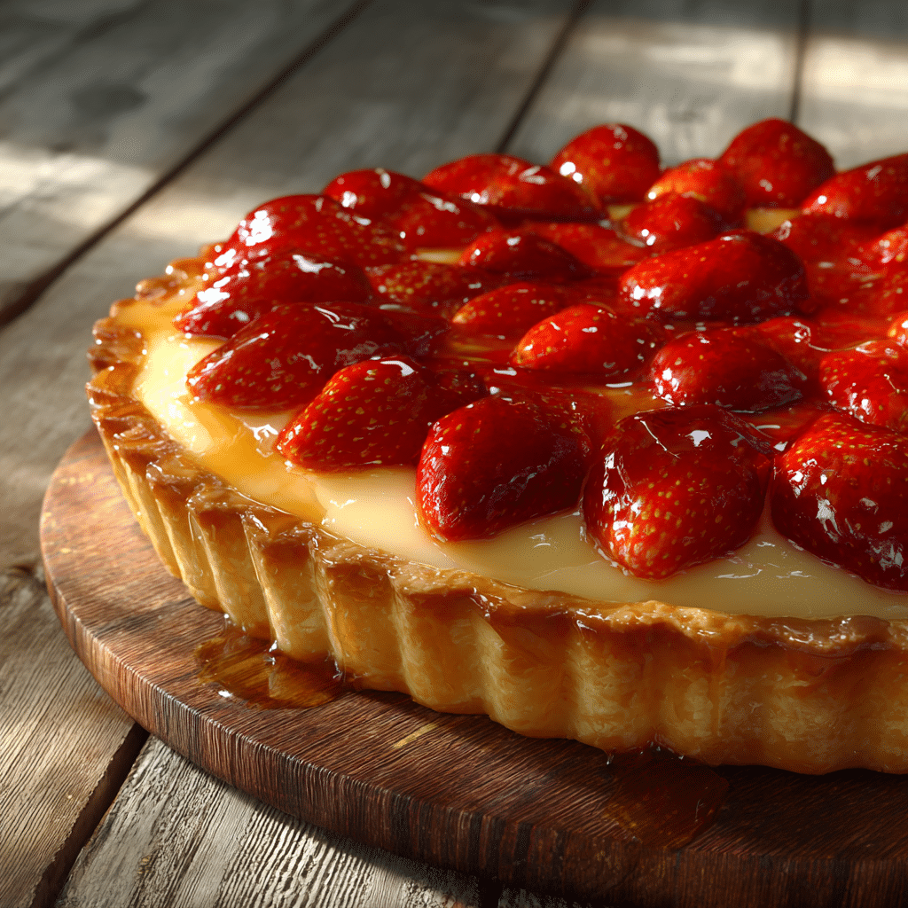 This Best Strawberry Tart Recipe is a delightful dessert featuring a buttery crust, creamy vanilla custard, and fresh strawberries topped with a glossy apricot glaze. Perfect for celebrations or a cozy afternoon treat, this tart is elegant yet simple to make at home.