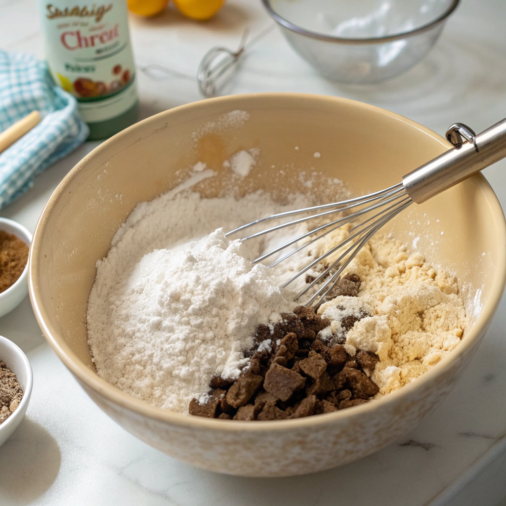In a medium bowl, whisk together the flour, baking soda, and salt. This ensures your birthday cake chocolate chip cookies bake evenly and rise beautifully.