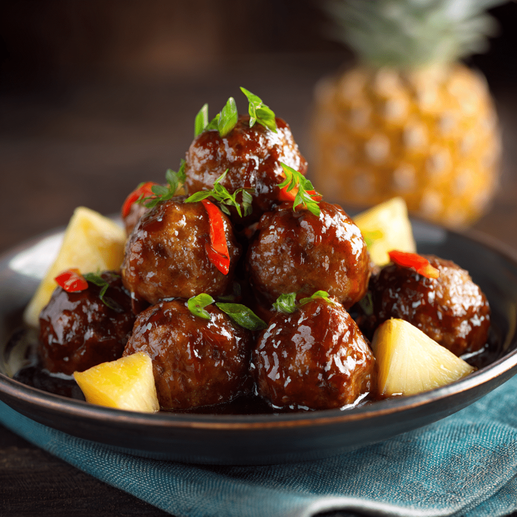 🍽️ Recipe Card: Brown Sugar Pineapple Hawaiian Meatballs