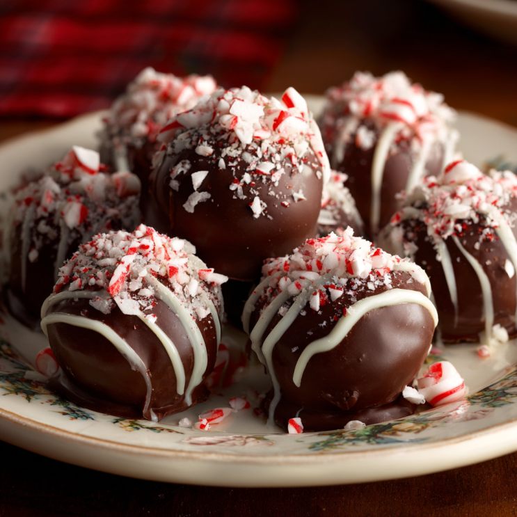 - Serve these Candy Cane Chocolate Truffles Smooth chocolate truffles rolled in crushed candy canes on a festive holiday platter with other cookies and chocolates.