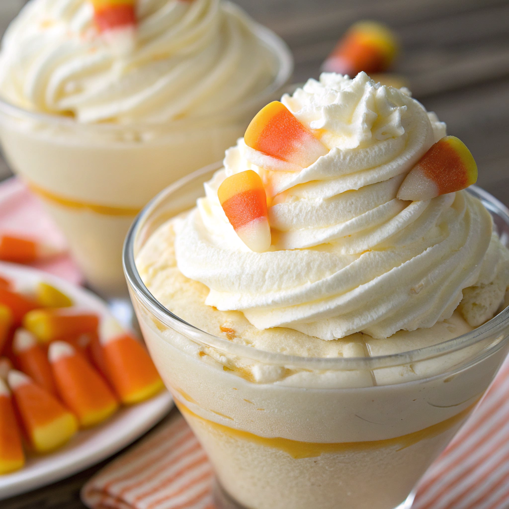 If desired, pipe whipped cream on top and add a candy corn candy for decoration. Serve chilled for best texture and flavor.
