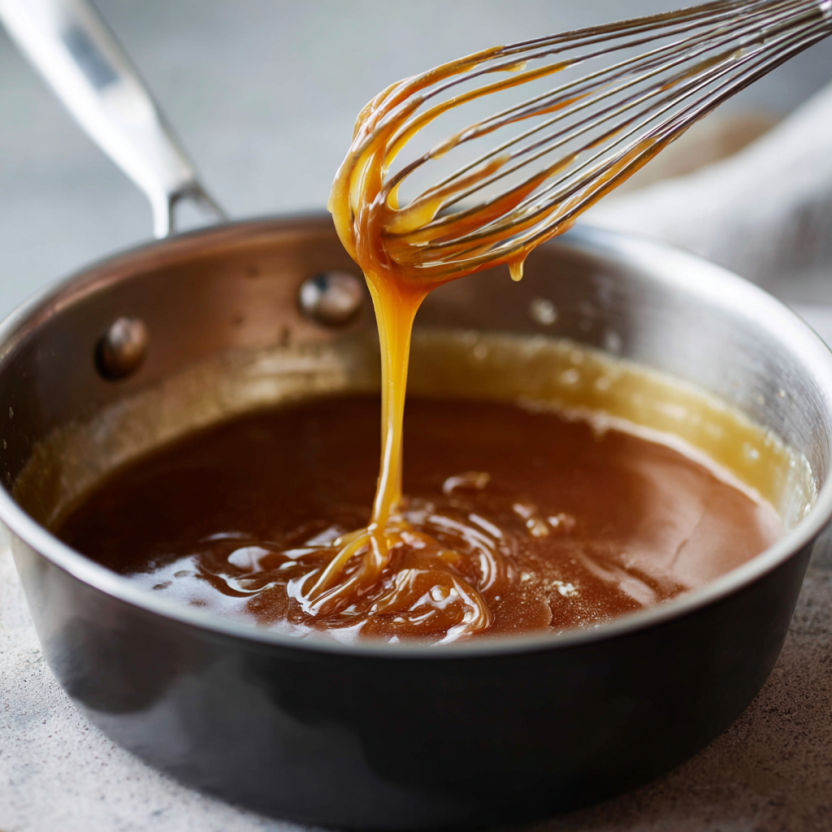 While the pudding bakes, prepare your caramel sauce. In a medium saucepan, heat the sugar over medium heat, stirring constantly until it melts into a deep amber liquid. Add the butter carefully (it will bubble up), then slowly pour in the heavy cream while whisking. Stir until smooth and glossy. Add a pinch of salt if desired.