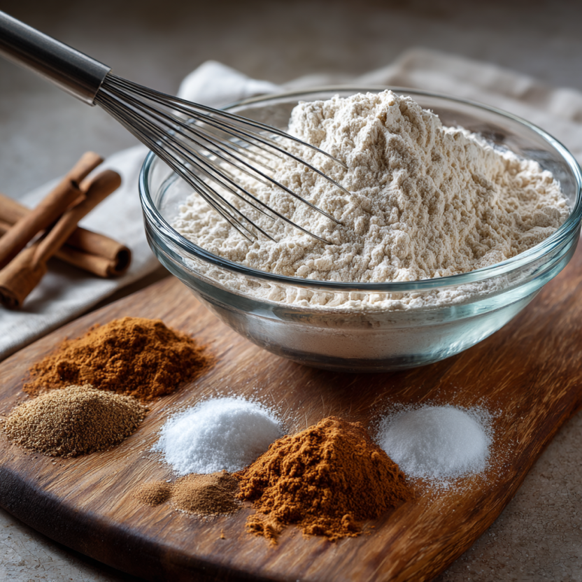 - Mix Dry Ingredients: In a medium bowl, whisk together flour, baking powder, baking soda, salt, cinnamon, nutmeg, and cloves. Set aside.