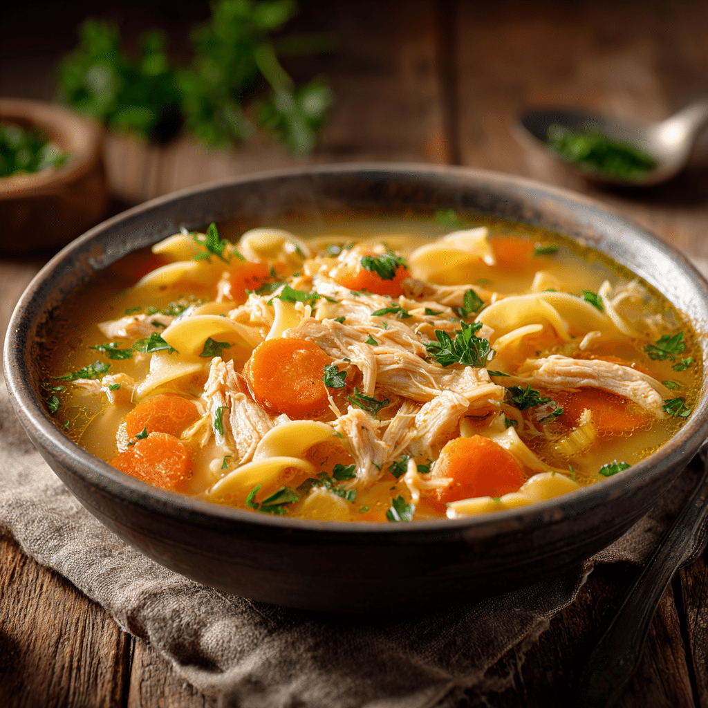 • Make-Ahead: Prepare the broth and shredded chicken in advance. Assemble the soup and cook the noodles just before serving for the best texture.
