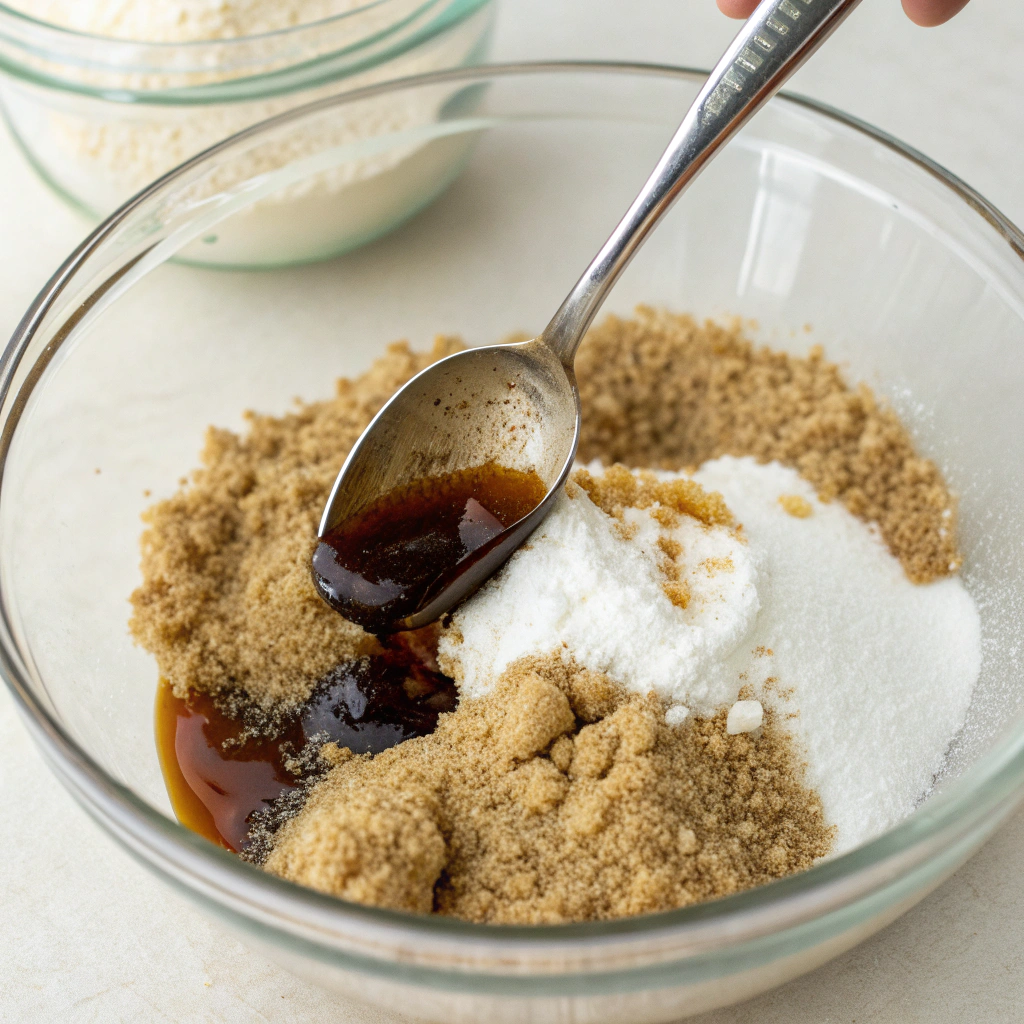 Stir in 1 tablespoon brown sugar, 1 tablespoon granulated sugar, and ¼ teaspoon vanilla extract until smooth.