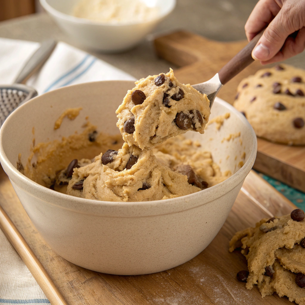 Fold in the chocolate chips gently. The dough should be thick and slightly sticky, ready to scoop onto the baking sheet.