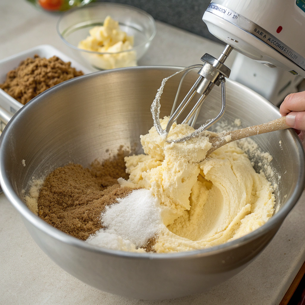 In a large mixing bowl, cream together softened butter, granulated sugar, and brown sugar until light and fluffy. Use a hand or stand mixer for best results.