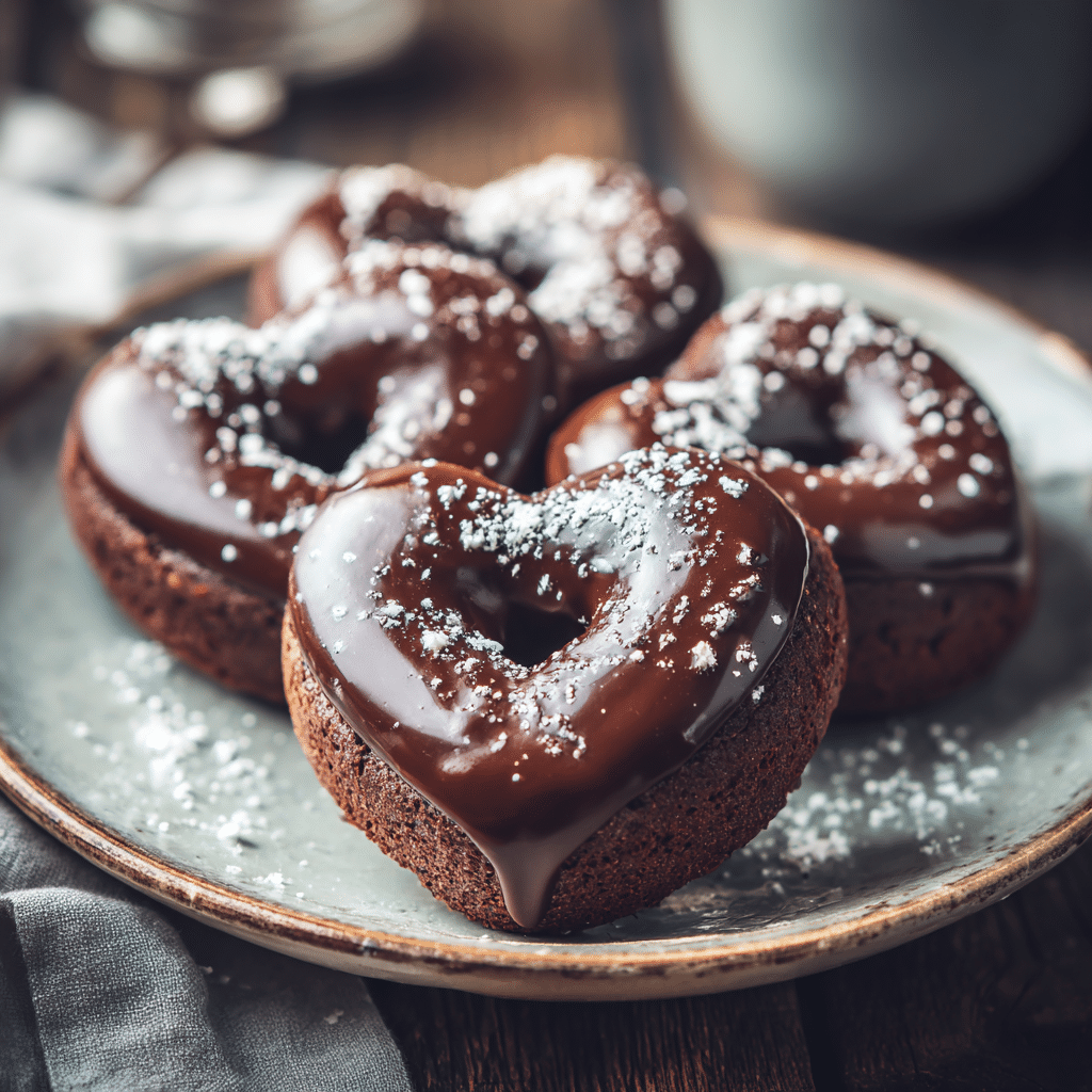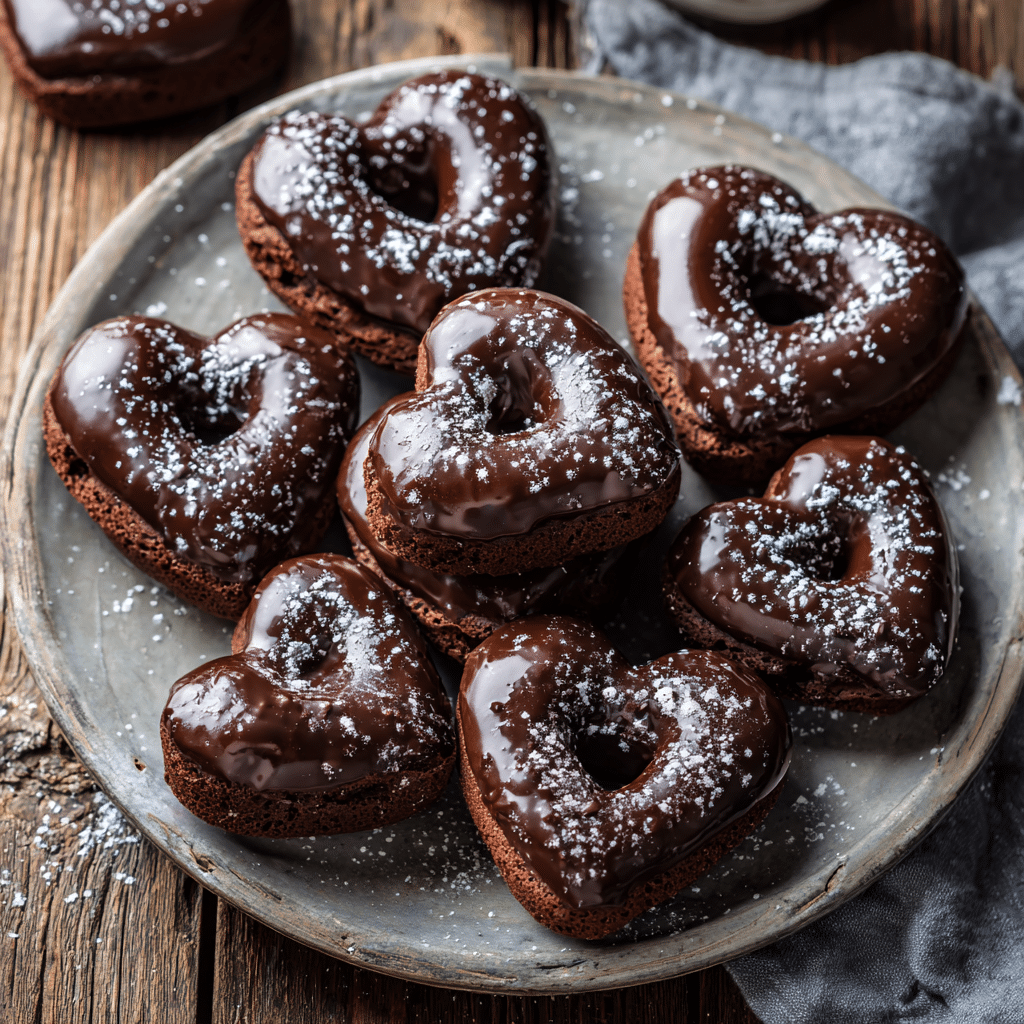 I love serving these Chocolate Heart Donuts with a hot cup of coffee or rich hot chocolate. For a festive touch, I sometimes add edible gold dust or colorful sprinkles on top of the glaze. They’re perfect for breakfast in bed, a cozy afternoon snack, or a sweet surprise for loved ones. Pairing them with fresh berries or a dollop of whipped cream adds a little extra indulgence.