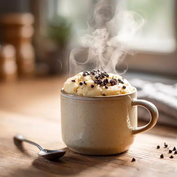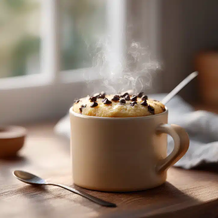 Use a large mug to prevent overflow. Mix gently to avoid a tough cake. Enjoy immediately or store for 24 hours in the fridge. Add a scoop of ice cream or drizzle of caramel for indulgence.
