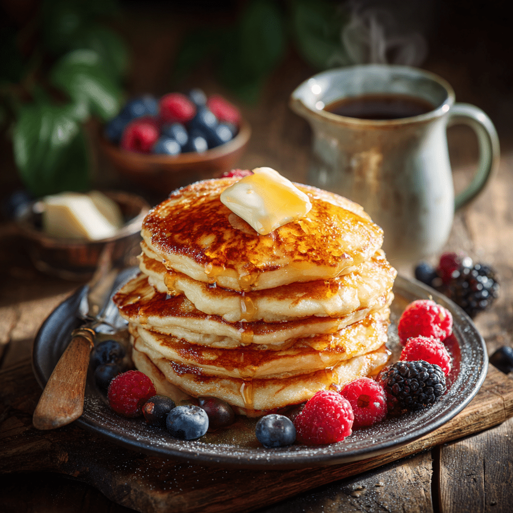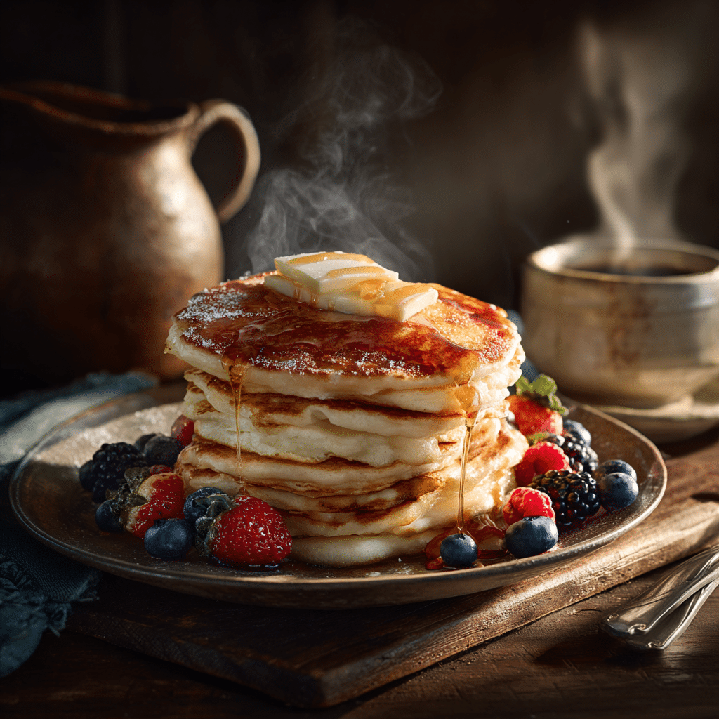 I love stacking the pancakes high on a plate, letting the warm butter melt into the nooks and crannies. Maple syrup is my classic choice, but sometimes I sprinkle fresh berries, sliced bananas, or even a dusting of powdered sugar for extra sweetness. I like serving them with a cup of strong coffee or a warm glass of milk, making breakfast feel like a comforting ritual.