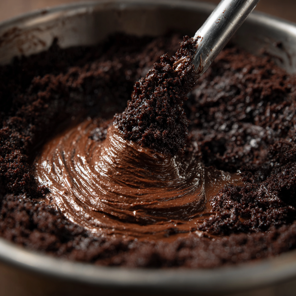 Prepare the chocolate cake according to the package or your recipe. Bake, cool completely, then crumble the cake into fine crumbs using your hands or a food processor.