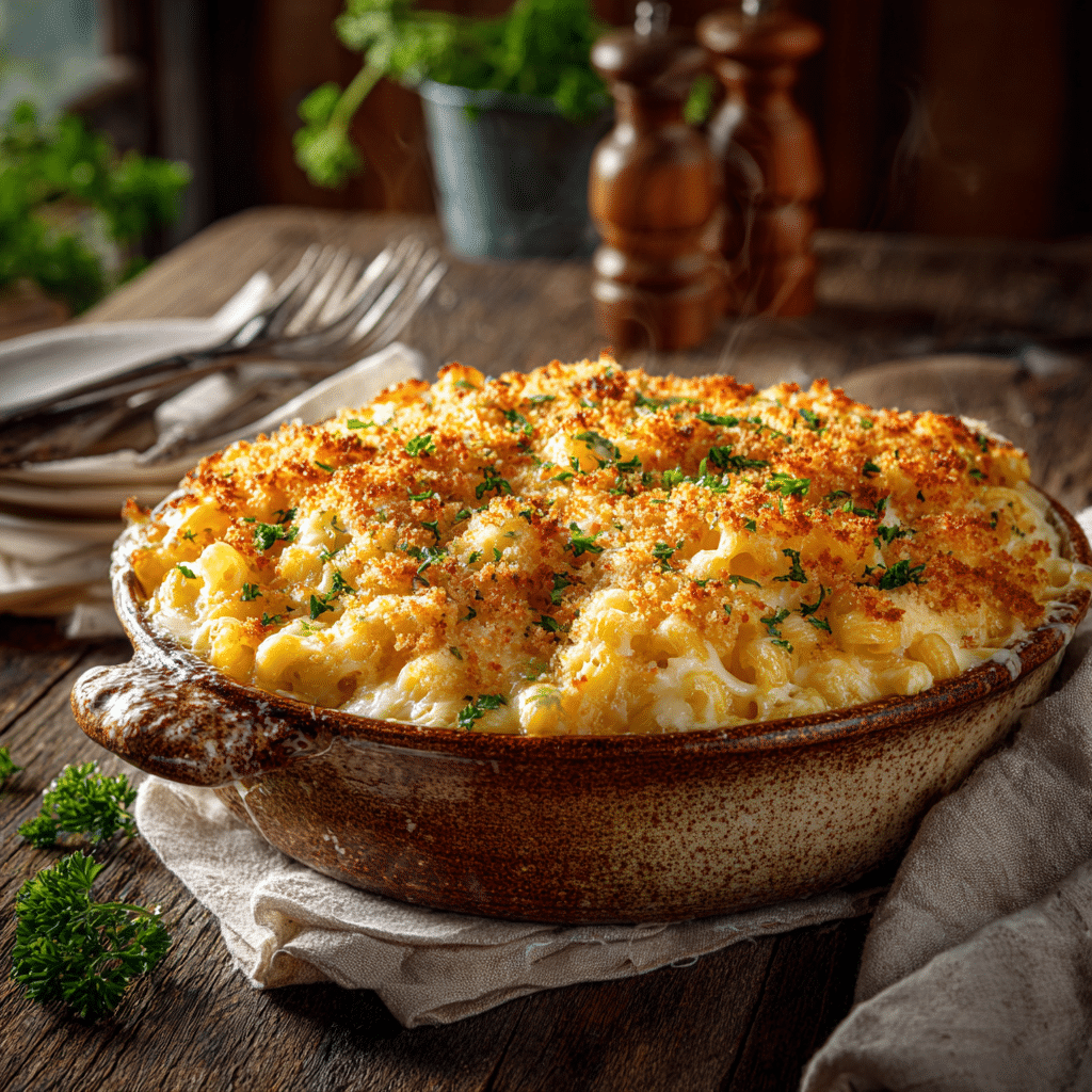 This creamy baked mac and cheese is rich, cheesy, and indulgent, featuring a velvety cheese sauce with a golden breadcrumb topping. Perfect for family dinners, cozy nights, or special occasions.