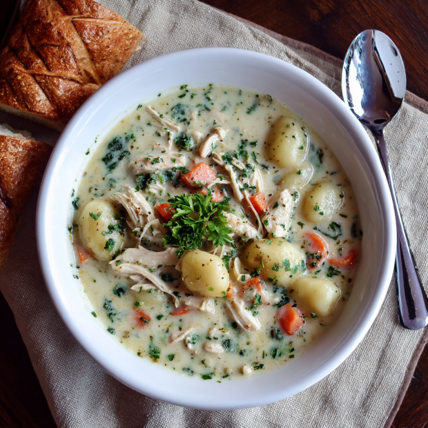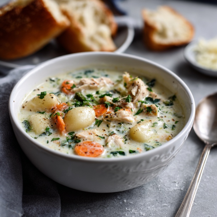 Creamy Chicken Gnocchi Soup is the ultimate cozy meal that brings comfort to your table. Made with tender chicken, soft gnocchi, fresh vegetables, and a rich creamy broth, this soup is both hearty and satisfying. It’s easy to prepare and perfect for busy weeknights or relaxed family dinners. Inspired by simple home cooking, this recipe delivers warm flavors and a smooth texture in every spoonful. Serve it with crusty bread for a comforting homemade meal everyone will love.