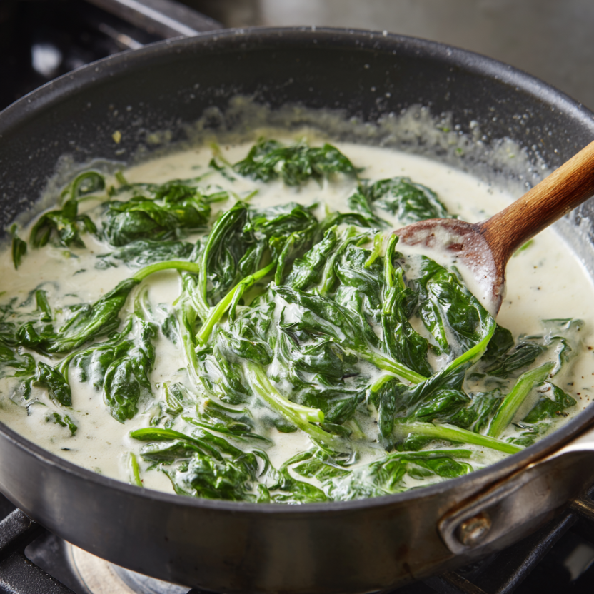 Lower the heat and stir in the heavy cream, creating that irresistible creamy texture. Finally, fold in the fresh spinach and let it wilt naturally in the warm soup. Taste and adjust seasoning as needed.