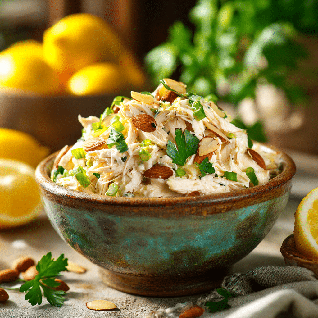 Creamy Lemon Chicken Salad is bright, refreshing, and satisfying. Tender chicken is combined with a zesty lemony dressing, fresh herbs, and optional crunchy nuts for a versatile meal perfect for lunches, picnics, or light dinners.