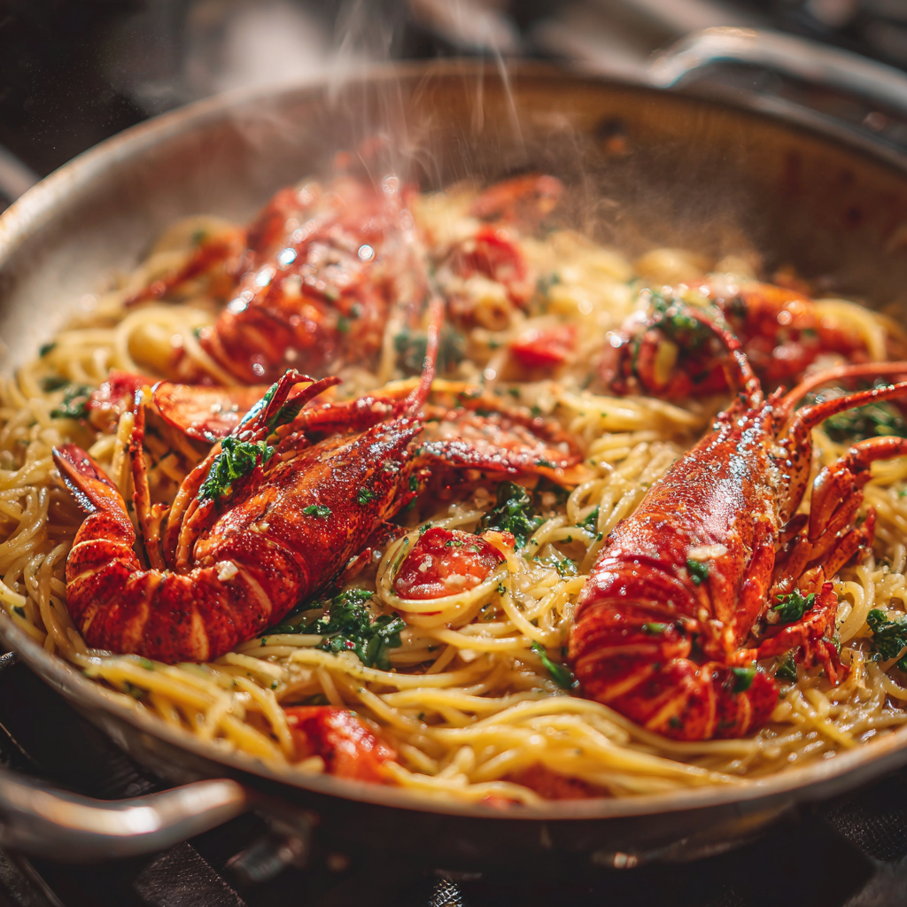 Return the lobster to the pan, then add the cooked pasta. Toss everything together until well coated. Add a splash of reserved pasta water if the sauce feels too thick.