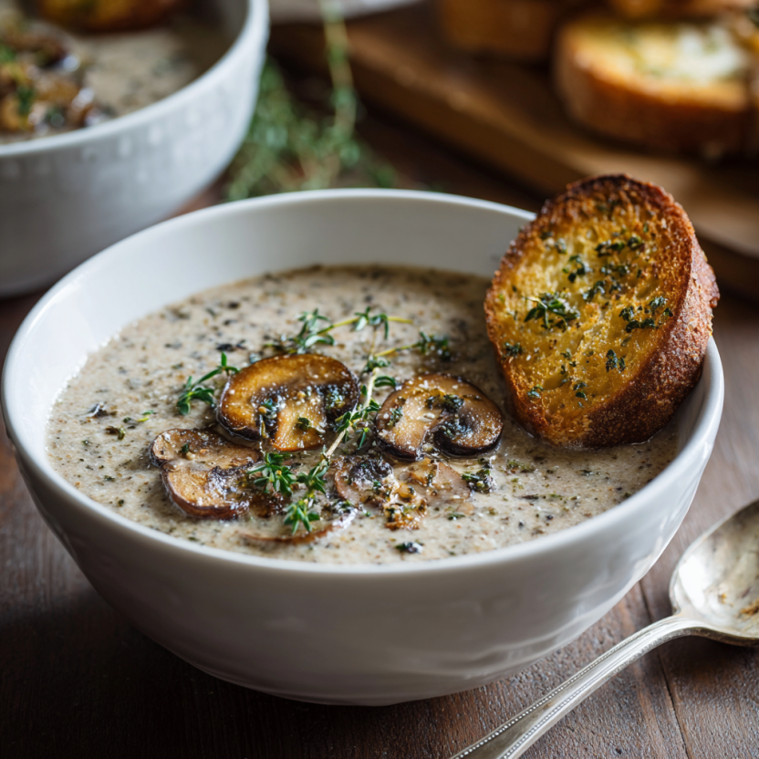 🍄🌿 Recipe Card: Creamy Mushroom Soup with Thyme