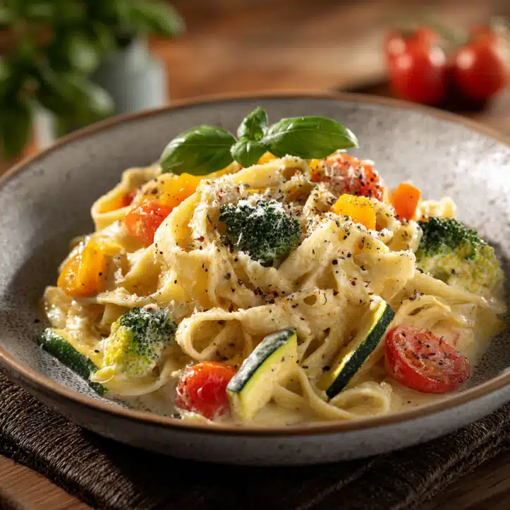 What I truly adore about this recipe is its versatility. You can easily swap vegetables according to season or preference. Zucchini, peas, carrots, or even roasted cherry tomatoes work beautifully. And it’s quick in under 30 minutes, I have a dish that looks like I spent hours on it, yet tastes like pure comfort. Cooking, to me, is about simplicity, love, and making food that makes people smile, and this pasta embodies all of that.