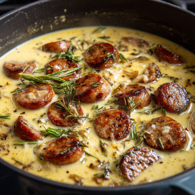 🥣 Instructions: Brown sausage → Sauté onions & garlic → Add potatoes & broth → Simmer → Blend partially → Add milk, cream & sausage → Serve