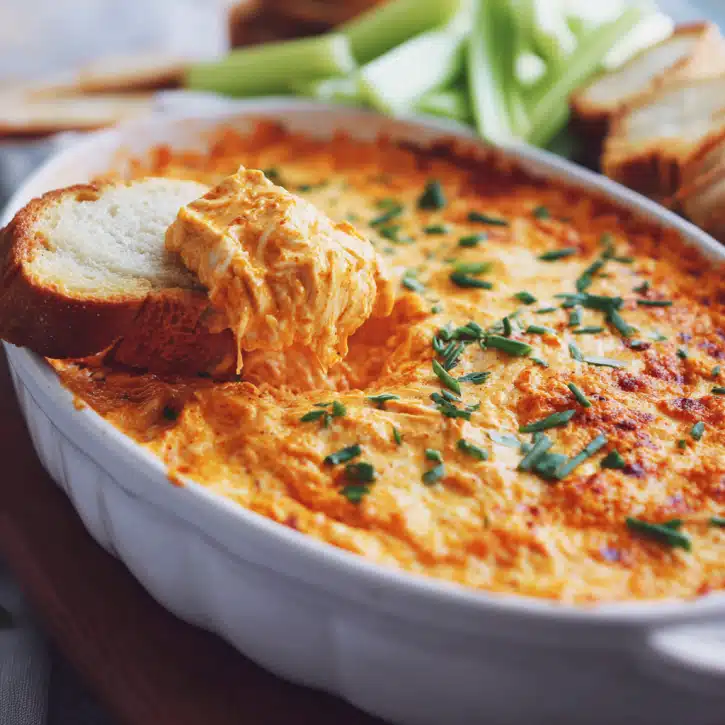 I can’t imagine a game day without this Creamy Spicy Buffalo Chicken Dip. Every time I pull it out of the oven, the room fills with warmth, laughter, and the irresistible scent of melted cheese and spicy buffalo sauce. Cooking isn’t just about following a recipe it’s about creating moments and memories, sharing stories, and enjoying each other’s company. This dip does all of that in a single, cheesy, spicy bite. Make it, share it, and watch it bring everyone together. Trust me, it disappears fast!