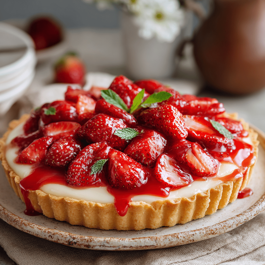 This Creamy Strawberry Tart features a buttery crust, silky cream filling, and fresh strawberries with a glossy glaze. Perfect for spring and summer desserts, it’s elegant, easy, and full of fresh flavor.