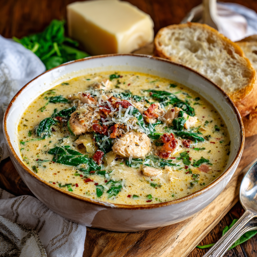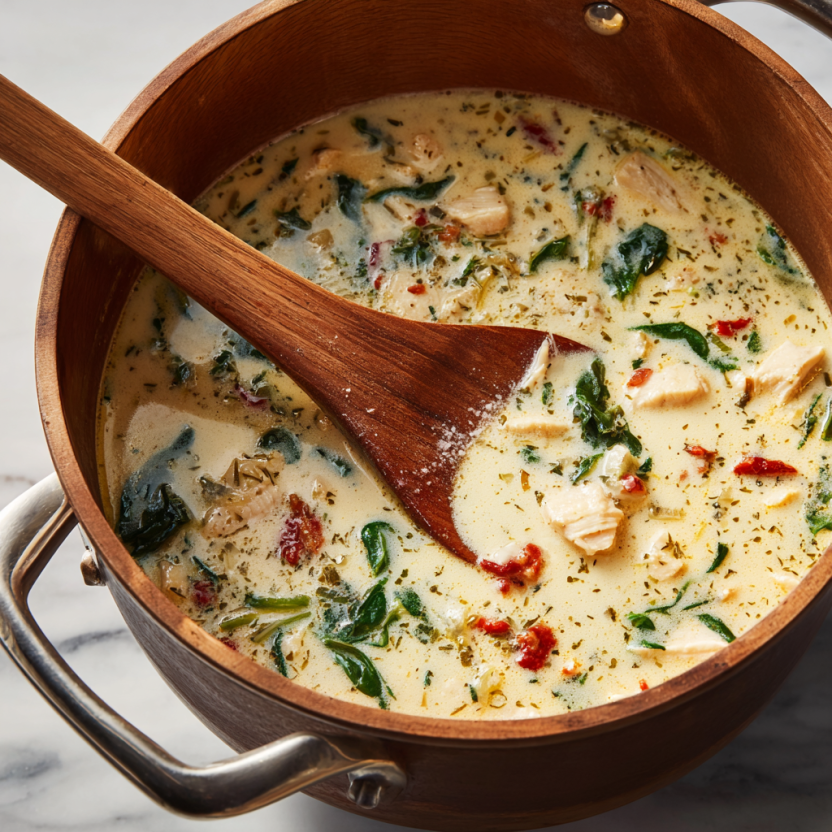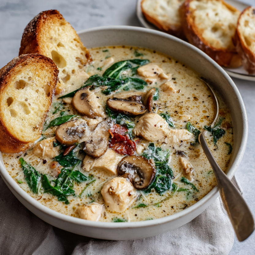 This Creamy Tuscan Chicken Soup is rich, comforting, and full of bold flavor. Tender chicken simmers in a creamy broth with garlic, sun-dried tomatoes, and fresh spinach for a cozy one-pot meal. It’s easy to make, perfect for busy nights, and tastes even better the next day. Serve it warm with crusty bread for a satisfying dinner the whole family will love. Simple ingredients and big flavor make this soup a favorite any time of year.