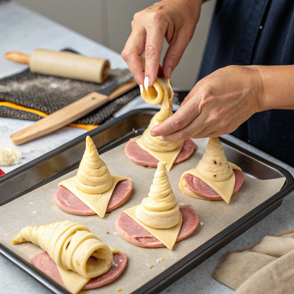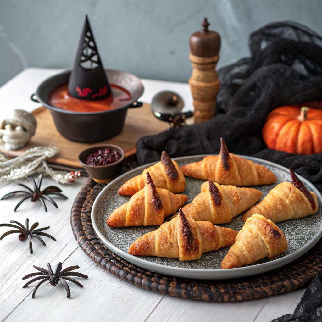 This recipe came to life on a cool October evening here in Crete. I was hosting a Halloween-themed dinner for friends and wanted something warm and savory that looked magical but didn’t take hours to make. I had crescent dough, cheese, and ham in the fridge, and with a little folding and fun these witch hat croissants were born!