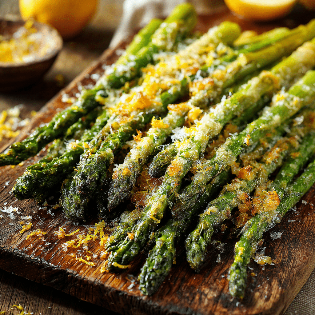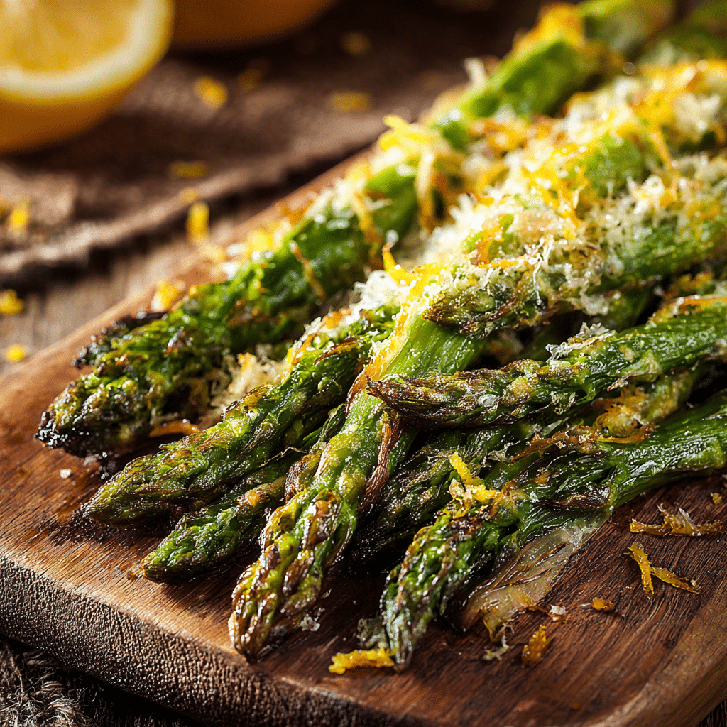 Crispy Roasted Asparagus with Parmesan is my go-to side dish for weeknights and special occasions alike. I toss fresh asparagus with olive oil, salt, pepper, and a touch of garlic powder, then roast until tender and slightly crisp. Just before finishing, I sprinkle freshly grated Parmesan, letting it melt and form a golden, crunchy topping. A hint of lemon zest adds brightness and completes the dish. This recipe is quick, versatile, and always a hit with family and friends. Serve alongside chicken, pasta, or a grain bowl for a simple yet elegant meal.