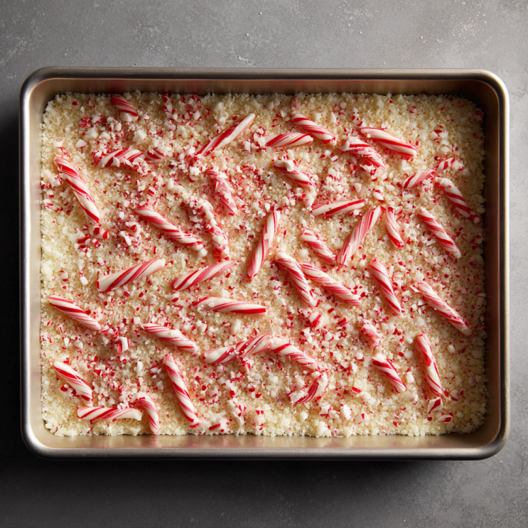 Sprinkle the crushed candy canes evenly over the top. Press lightly to ensure they stick. Optional: Add a pinch of sea salt for a flavor boost.