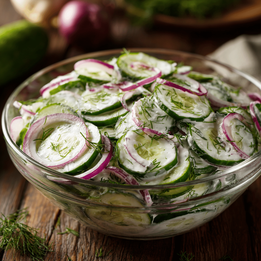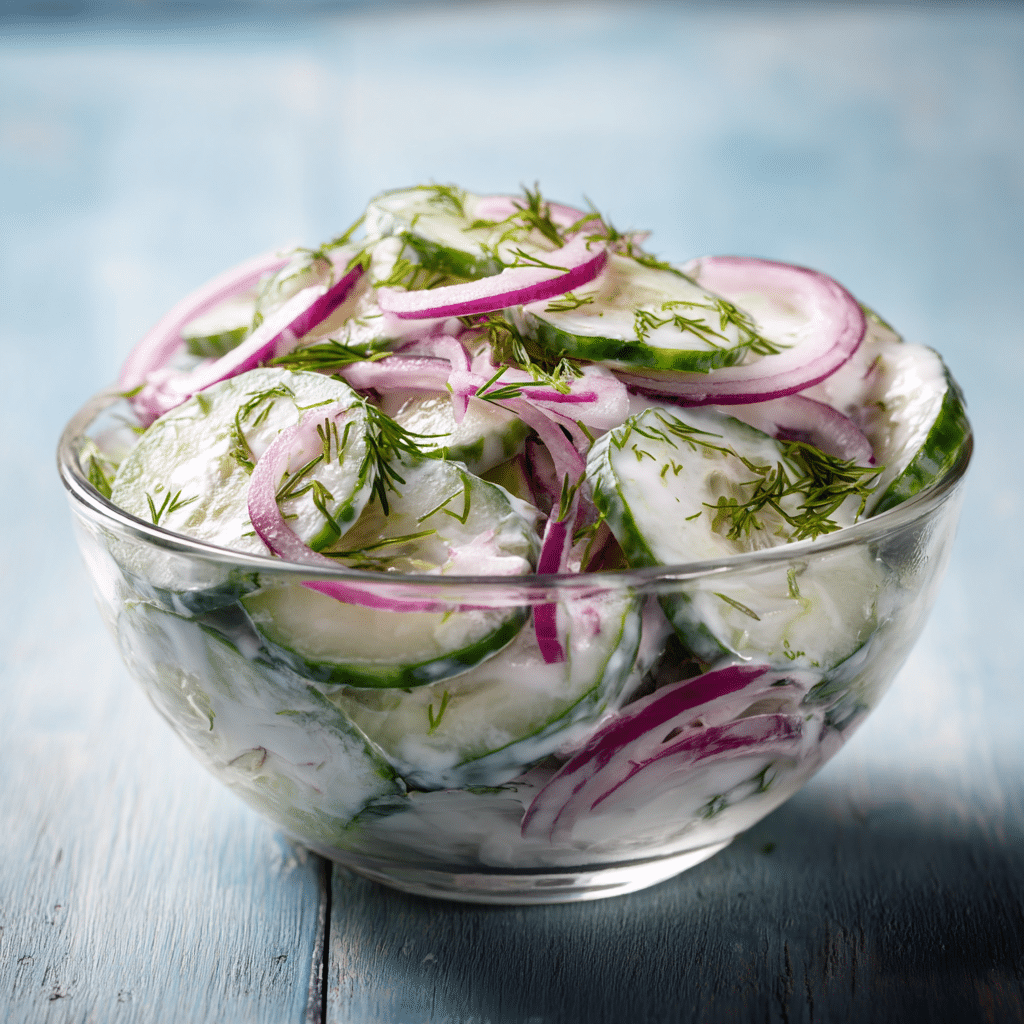 This Easy Cucumber Dill Salad is a refreshing, creamy side dish made with crisp cucumbers, fresh dill, and a tangy sour cream dressing. It’s quick to prepare and perfect for warm days, picnics, or family meals. Simply slice cucumbers, mix a creamy dressing with dill, vinegar, and seasoning, then toss everything together and chill. The result is a light, flavorful salad that pairs beautifully with grilled dishes or sandwiches. With minimal ingredients and maximum flavor, this recipe is simple, comforting, and full of freshness. It’s a go-to dish that brings ease and joy to any table.