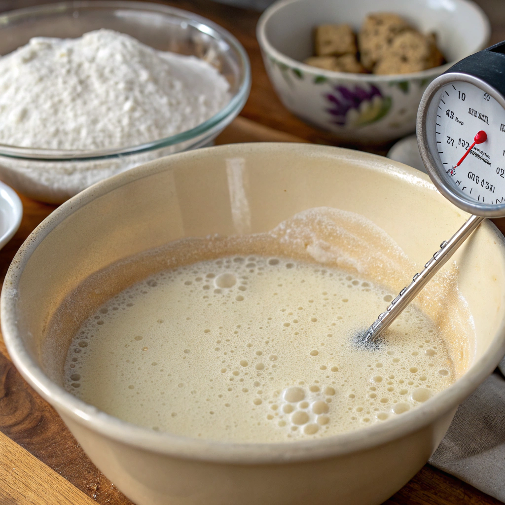 Warm the milk until it’s slightly above body temperature. In a large bowl, combine the warm milk, yeast, and 1 tablespoon of sugar. Stir gently and let it sit for 5–10 minutes until foamy. That foam means your yeast is alive and ready to make magic happen.