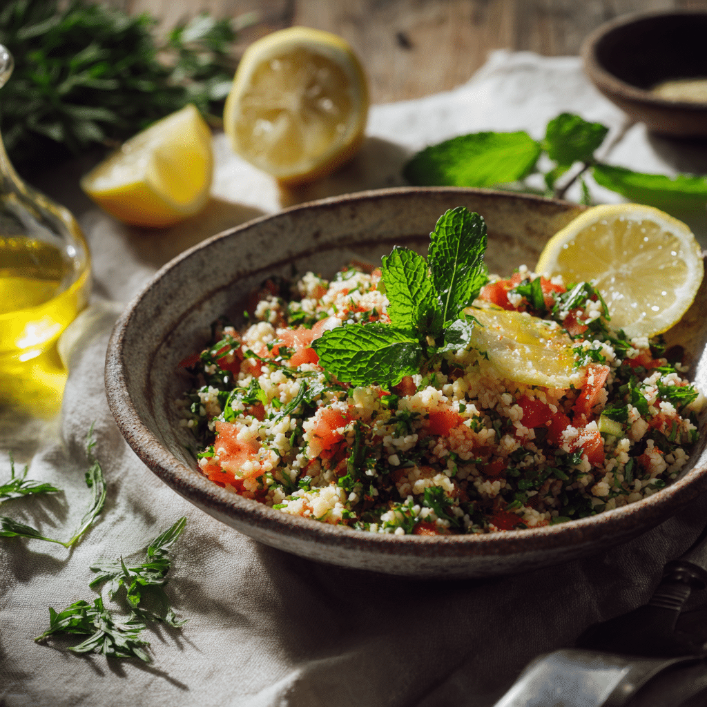 I make this Easy Tabbouleh Salad with bulgur, fresh parsley, mint, tomatoes, and lemon juice. I soak the bulgur until soft, then mix it with finely chopped herbs and vegetables. I dress everything with olive oil and lemon juice, then season it simply. This salad tastes fresh, light, and full of flavor. I love serving it chilled with bread or grilled dishes. It stores well in the fridge and tastes even better the next day. It’s quick, healthy, and perfect for busy days when I want something refreshing.