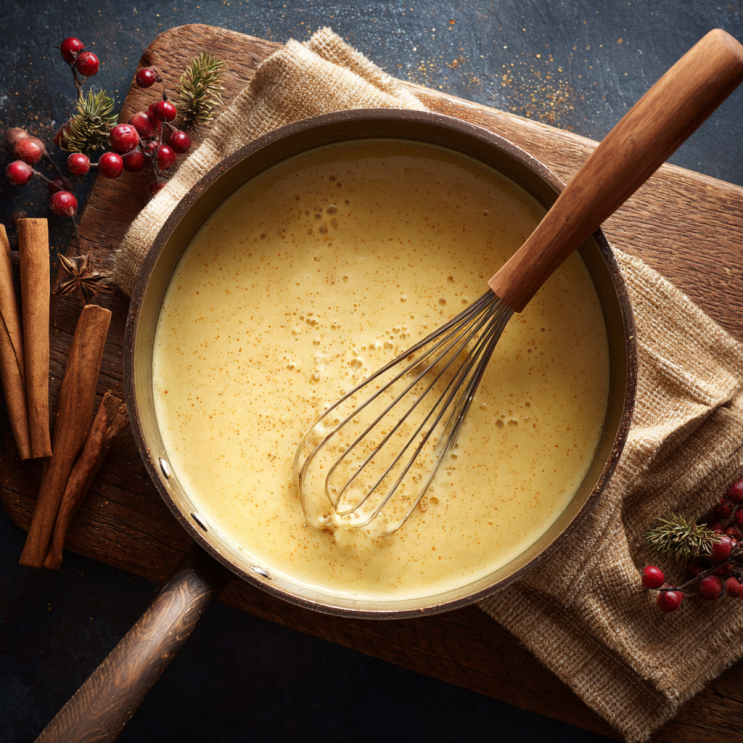 In a medium saucepan, combine sugar, butter, and eggnog. Stir continuously over medium heat until everything melts together.