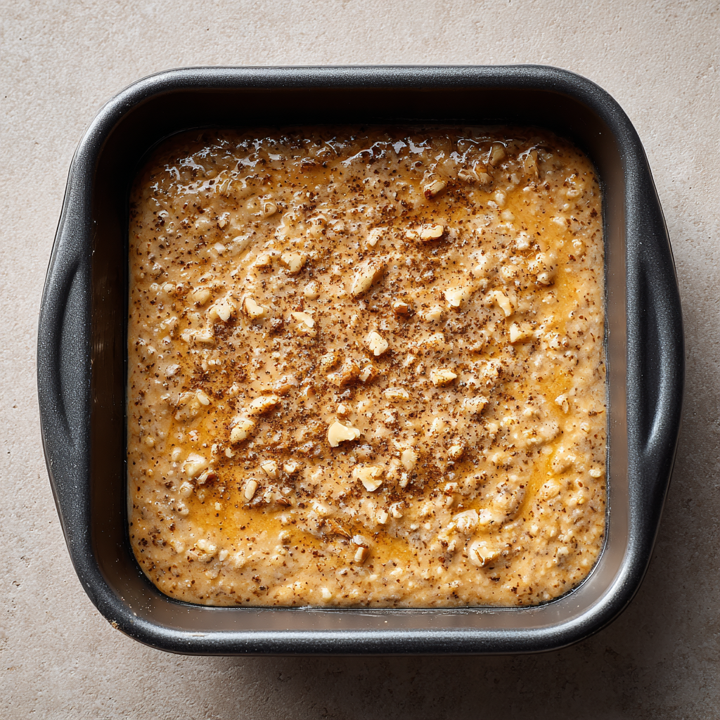 Spread the mixture evenly into the prepared pan. Sprinkle extra nutmeg over the top.