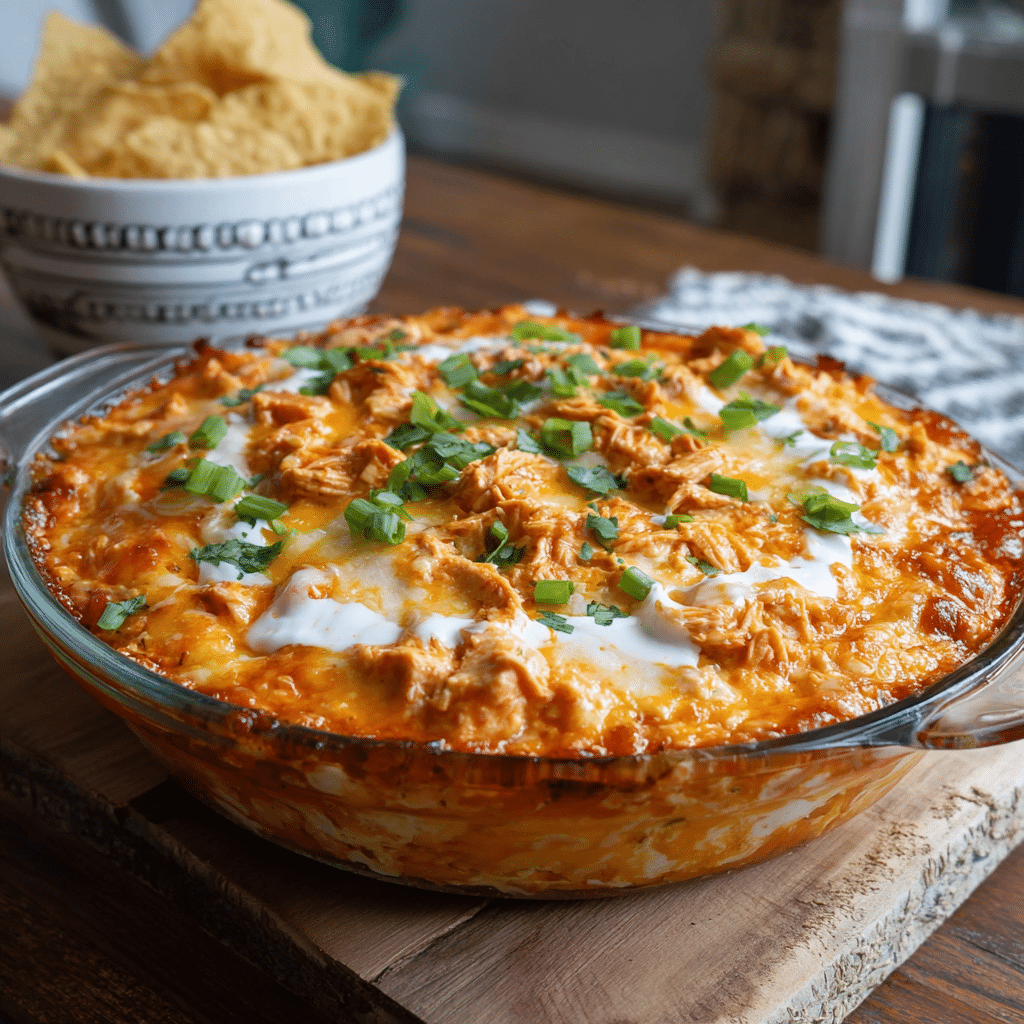 Whenever I make this Buffalo chicken dip, I remember my first attempt years ago. I had friends over, and we ended up eating it straight out of the baking dish with tortilla chips because it smelled too good to wait. From that moment on, it became my signature game-day treat. Today, I’m sharing it with you, with all my tips and little secrets, so your next football Sunday can be just as memorable.