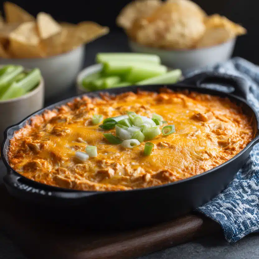 Every game day takes me right back to my small kitchen, crowded with friends, laughter bouncing off the walls, and the oven humming softly in the background. I remember one rainy Sunday when the match went into overtime, and everyone hovered around the table waiting not just for the final score, but for this Game Day Buffalo Chicken Dip Recipe to come bubbling out of the oven. That was the moment I realized how powerful comfort food can be. It holds people together, keeps conversations flowing, and turns ordinary days into unforgettable ones.