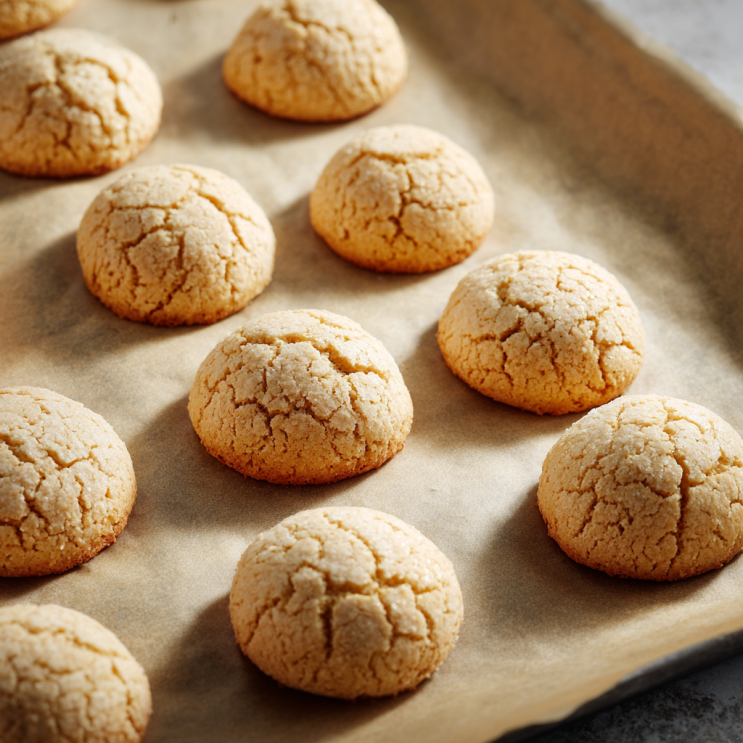 Place the dough balls on a parchment-lined baking sheet. Bake at 350°F (175°C) for 8–10 minutes. The cookies should look puffed with slight cracks on top.