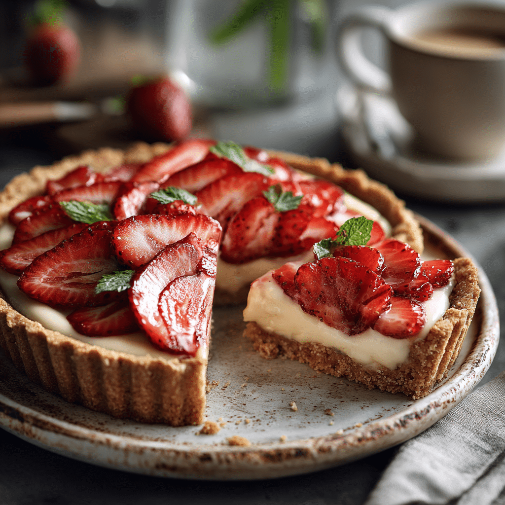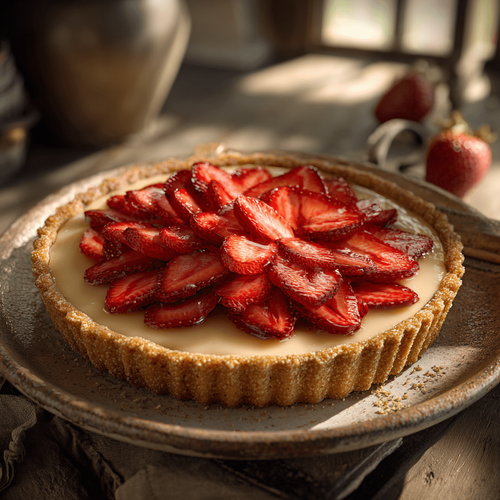 This Gluten-Free Strawberry Tart recipe is a light, fresh, and elegant dessert made with an almond flour crust, creamy vanilla filling, and juicy strawberries. I love how simple ingredients come together to create something so beautiful and delicious. The Gluten-Free Strawberry Tart is perfect for summer gatherings, afternoon tea, or special occasions. It’s naturally gluten-free, easy to prepare, and best served chilled. Every bite is soft, creamy, and fruity, making it a crowd-pleasing dessert that feels both homemade and luxurious.