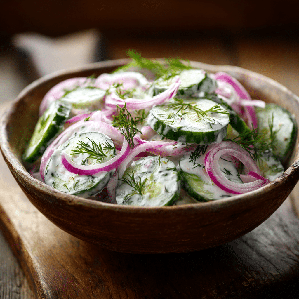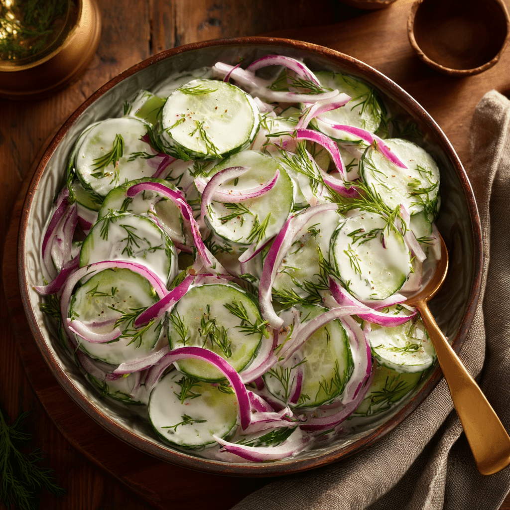 What I love most about this salad is how simple it is. Just a few fresh ingredients, and you have a dish that’s both nourishing and full of flavor. The cucumbers stay crisp, the dill adds a fragrant herbal note, and the creamy dressing ties everything together perfectly. I often bring this salad to potlucks, and it’s always a hit everyone asks for the recipe!