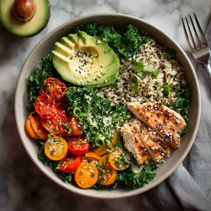 These healthy dinner recipes for clean eating are perfect for nourishing your body without sacrificing flavor. Roasted vegetables, protein-packed chickpeas, and fluffy quinoa come together in a colorful, satisfying meal. Toss roasted sweet potatoes, zucchini, bell peppers, and cherry tomatoes with chickpeas and cooked quinoa, then finish with fresh lemon juice and parsley. Serve warm with optional avocado or feta. Quick, simple, and versatile, this dish works for weeknight dinners or meal prep. It’s wholesome, flavorful, and comforting the ideal clean-eating recipe that reminds you that healthy food can be joyful, cozy, and deeply satisfying.