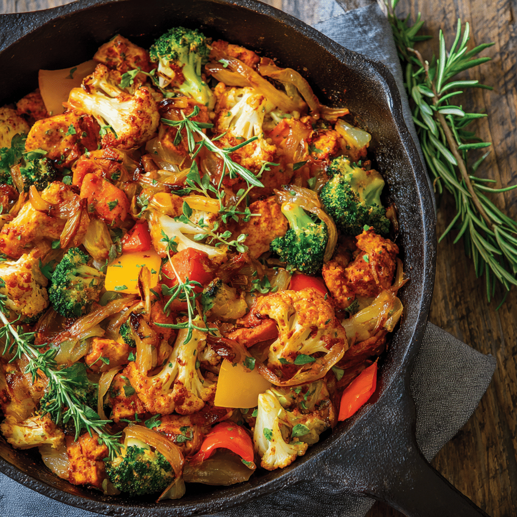 👩🍳 Instructions <ol> <li>Chop all vegetables and cut chicken into bite-sized pieces.</li> <li>Heat olive oil in a large skillet. Sauté onions and garlic for 2–3 minutes.</li> <li>Add chicken, season with paprika, oregano, salt, and pepper. Cook 5–6 minutes until lightly golden.</li> <li>Add bell peppers, zucchini, and broccoli. Stir-fry 5–7 minutes until tender-crisp.</li> <li>Mix soy sauce and honey. Pour over chicken and vegetables. Toss to coat.</li> <li>Serve over cooked quinoa or brown rice. Garnish with fresh herbs.</li> </ol>