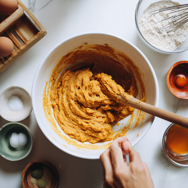 In a large mixing bowl, whisk together the oat flour, baking powder, baking soda, salt, cinnamon, and nutmeg. - Add the Wet Ingredients: