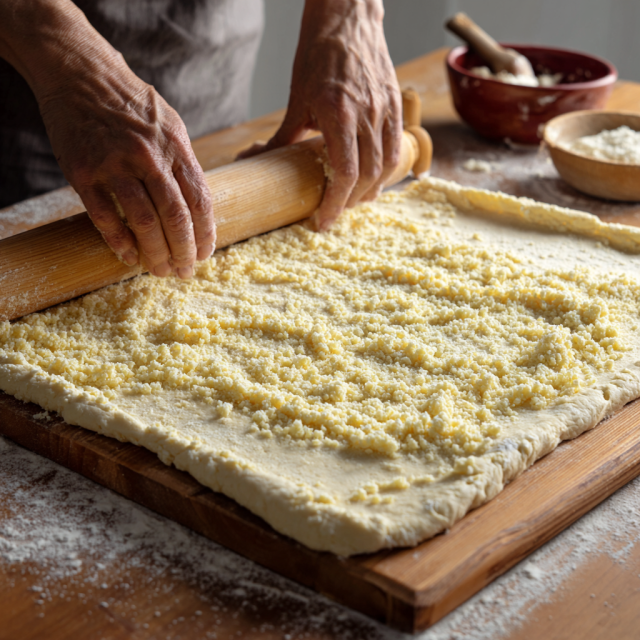Starting from one long edge, gently roll the dough into a tight log. Slice into 10–12 rolls using a sharp knife or dental floss (a neat little trick!).