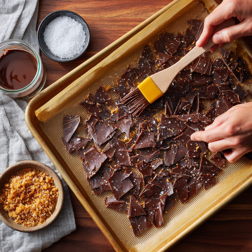 Pour the mixture onto your prepared baking sheet. Tilt or gently spread it with a greased spatula to make it thin.