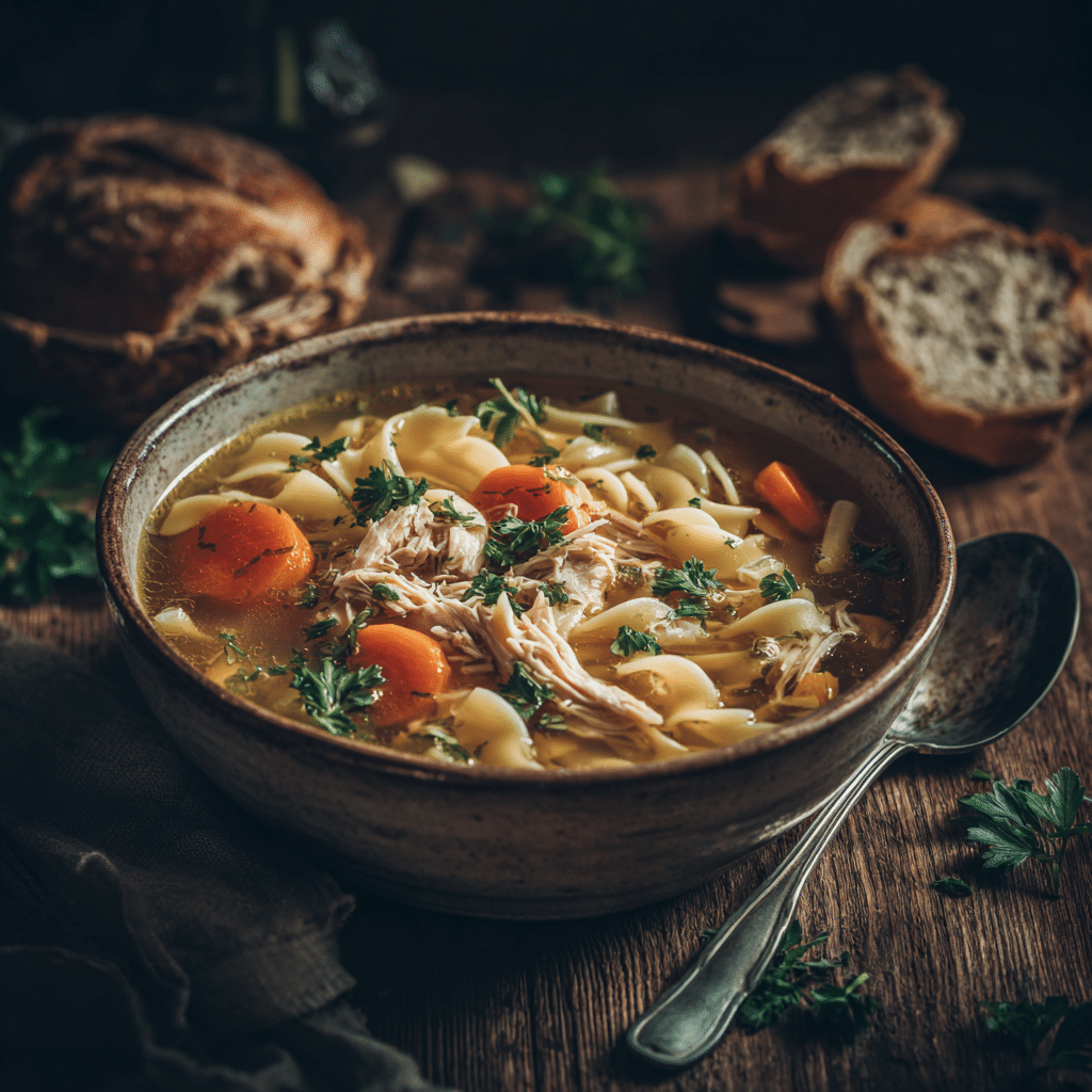 • Make-Ahead Tip: Prepare the broth and shredded chicken in advance. When ready, combine everything, simmer, and add noodles for a quick, satisfying meal.