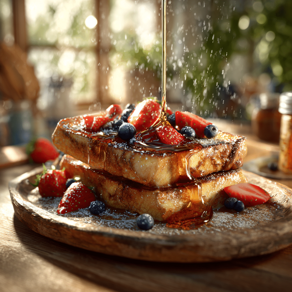 Homemade French Toast is my go-to weekend breakfast. I whisk eggs, milk, cinnamon, and vanilla to make a creamy custard, dip thick slices of brioche or challah, and cook them golden on a skillet. Serve with butter, maple syrup, and fresh berries for a cozy, indulgent treat. It’s perfect for lazy mornings, family brunches, or when you simply want to feel comforted by food. The recipe is simple, quick, and creates magical breakfast memories. With a few tips like using slightly stale bread and balancing sweetness with a pinch of salt, it’s always perfect.