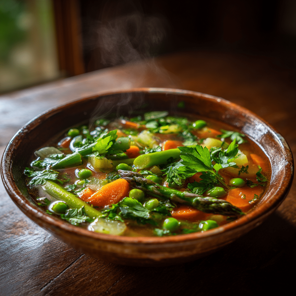 I love making Homemade Spring Vegetable Soup because it celebrates the very best of seasonal produce. It’s colorful, vibrant, and naturally light yet comforting perfect for sharing with family or a quiet night in. I use fresh spring vegetables like tender asparagus, sweet peas, and baby carrots, combined with aromatic herbs to bring out their flavors. This soup is not just about nourishment for the body; it’s a celebration of the season, a way to bring women and families together around the table, sharing stories while enjoying something wholesome.